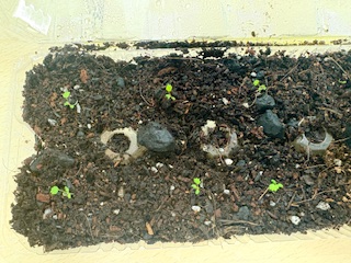 今日、またキッチンペーパーの中を覗いてみたら、3個のいちごの種が発芽していました。たまごパックに移動させました。