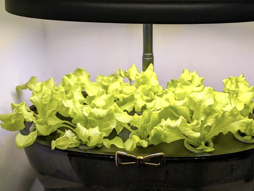 現在の画像をもう一度。なぜか、水耕栽培キットの左半分が大きく育っています。