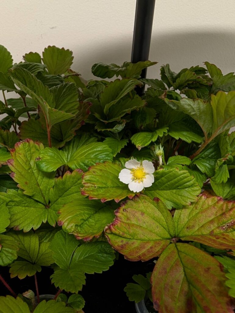こんなに大きくなって可愛いイチゴの花が咲いたなんてスゴイ~~!いちごの栽培は難しいらしいのに、さすがLED水耕栽培!☆
