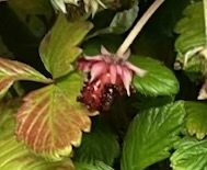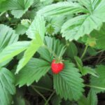 わかりにくいですが、寄って見てみると、赤いワイルドストロベリーが一つ、発見できます。