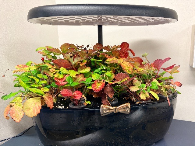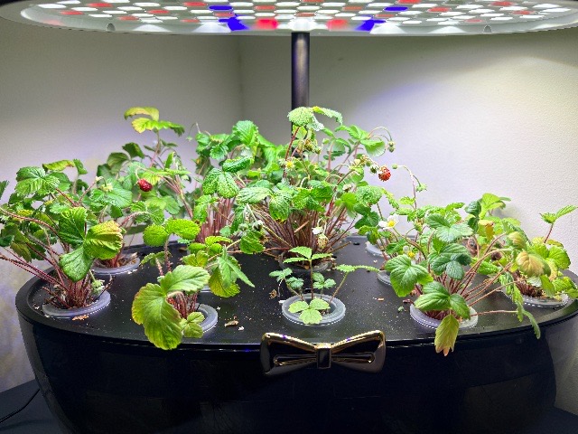 2025年10月31日よりメルカリでワイルド・ストロベリーの種を買い、職場でオフィスワークをしながら、発芽した12個の苗を11月19日にLED付き水耕栽培キットで栽培を始めました(上司許可済み)。