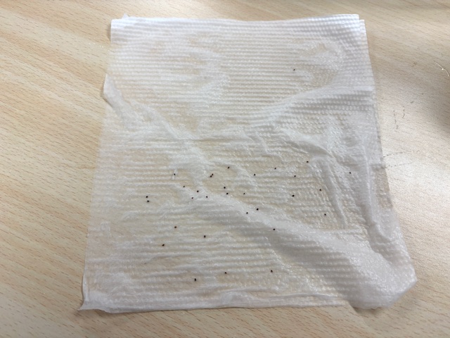 新しいキッチンペーパーに移し替える時に種を数えましたが、購入時の案内通り、きっちり30粒ありました!!