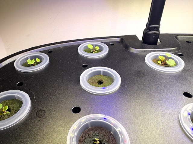 水耕栽培キットで育てているイチゴですが、今朝出社したら苗の上にかぶせていた、小さな透明のプラスチックキャップが外されていました。誰が外したの~~~ッ!?