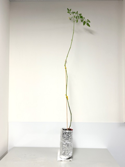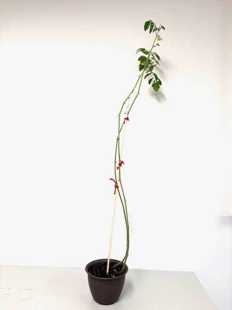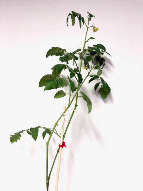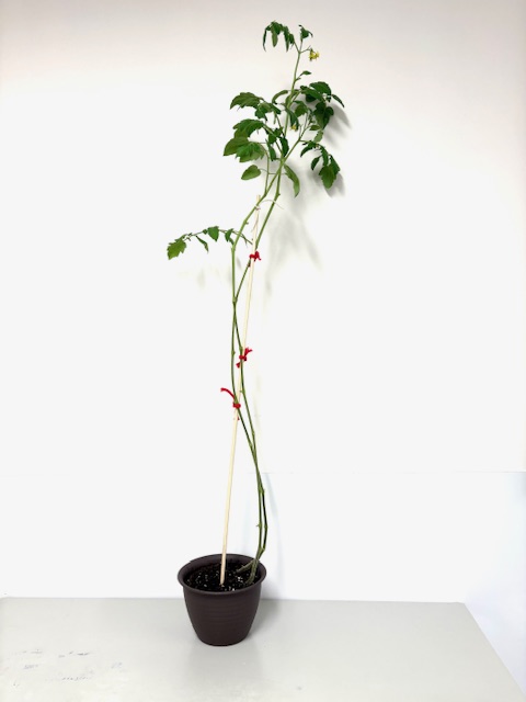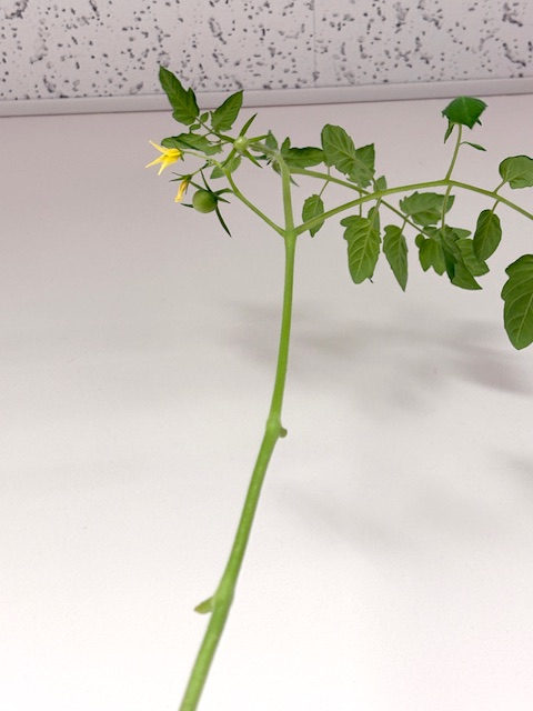 先週、栄養が上の葉と黄色のお花に届くように、わき芽摘みをして下の方の葉っぱを大胆にカットしていました。下の方どころか、トップのお花が咲いていた葉と周辺の葉以外は、全てカットしていました。