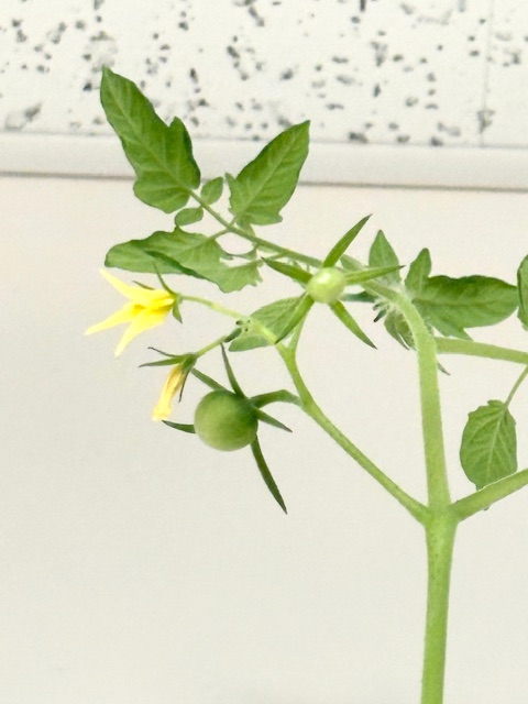 2025年5月下旬に、100均ですずなりミニトマトの種を買って、職場の小さなオフィスで家庭菜園ならぬ職場菜園を始めました。全くの素人で初めてです。自己流のやり方で楽しみながら育てています。オフィスの窓際に置いて室内栽培をしています。