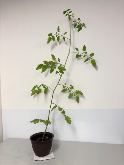 全部で8つのトマトの鉢があります。いつもは、窓際に並べているのですが、撮影の為にキャビネットの上に移動させました。支え棒を差していないので、倒れそう・・!100均で買ってこようかなー、と思いましたが、電車で持ってくるのが恥ずかしくて買っていません。