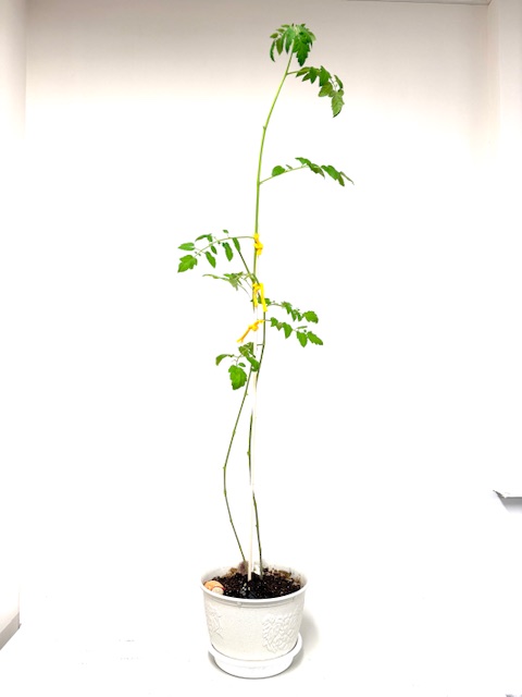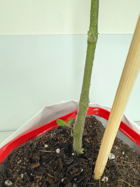 2025年5月下旬に、100均ですずなりミニトマトの種を買って、職場の小さなオフィスで家庭菜園ならぬ職場菜園を始めました。全くの素人で初めてです。自己流のやり方で楽しみながら育てています。オフィスの窓際に置いて室内栽培をしています。